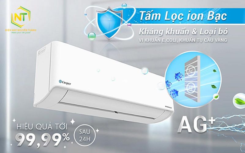 Công nghệ ion Bạc trên điều hòa giúp ức chế và vô hiệu hóa đến 99% vi khuẩn, virus, đồng thời ngăn chặn sự phát triển của nấm mốc trong không gian sống.